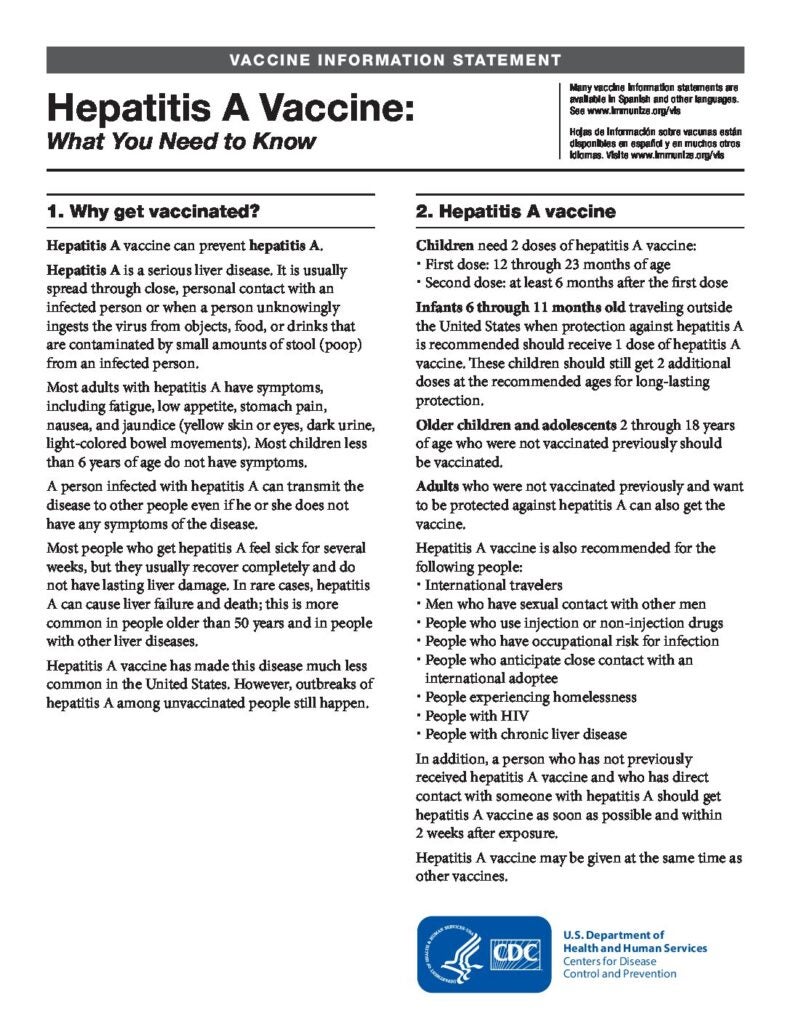 Standing Orders for Administering Hepatitis A Vaccine to Adults
