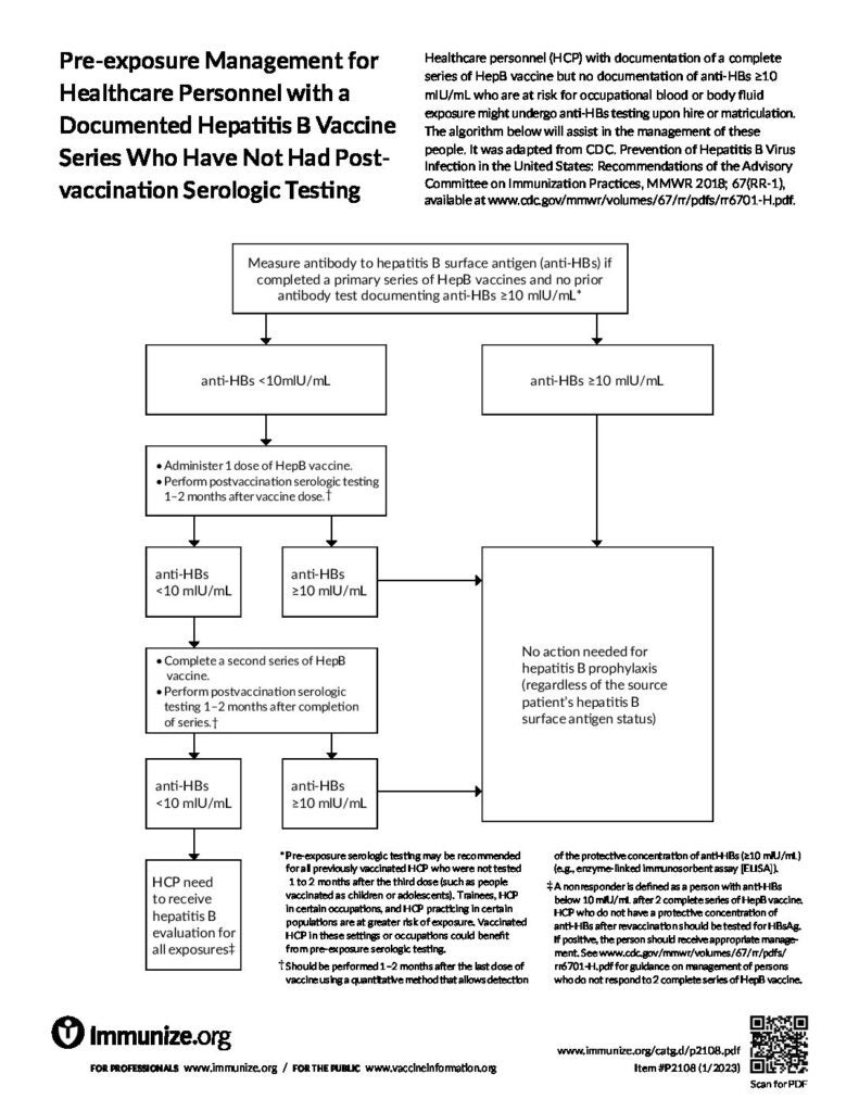 Algorithm to assist in the pre-exposure management of healthcare personnel