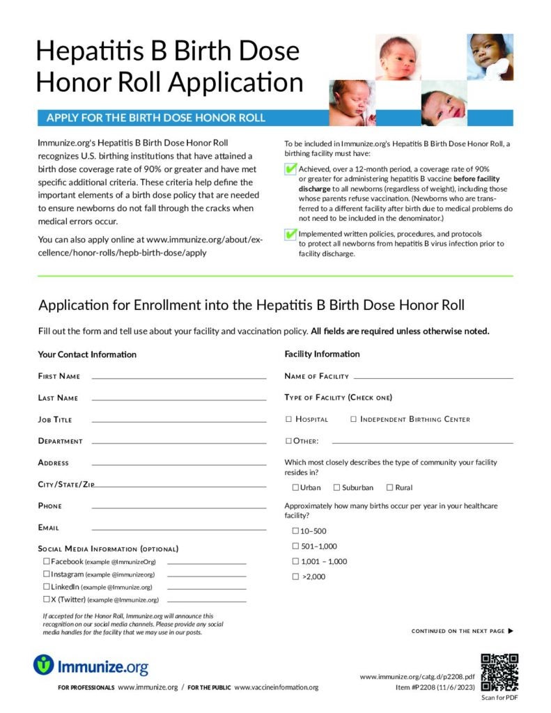 Immunize.org’s Hepatitis B Birth Dose Honor Roll