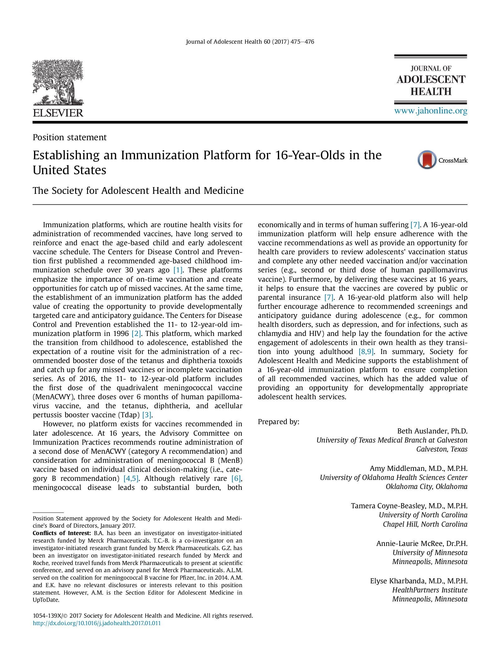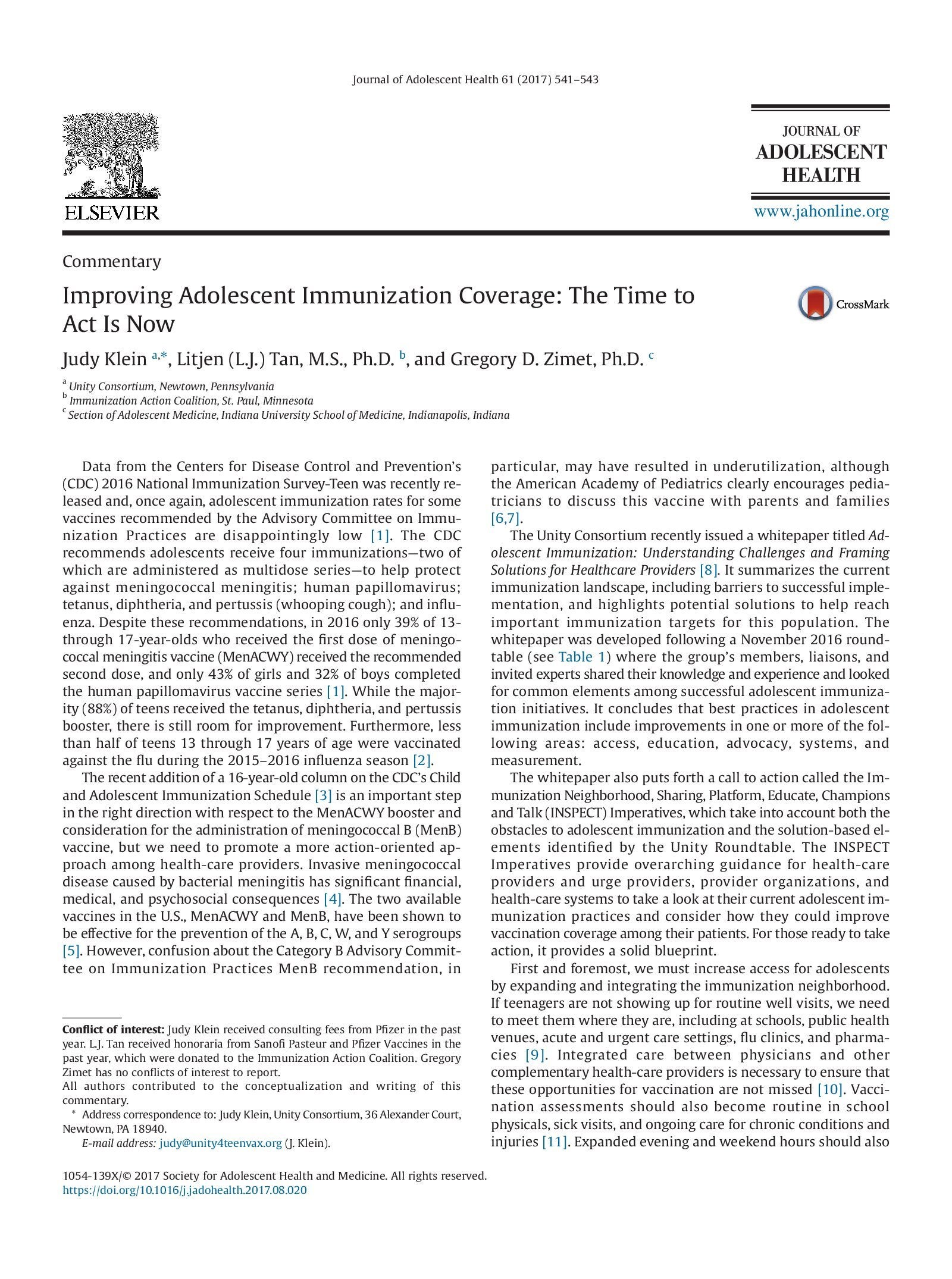 Commentary: Improving Adolescent Immunization Coverage: The Time to Act Is Now