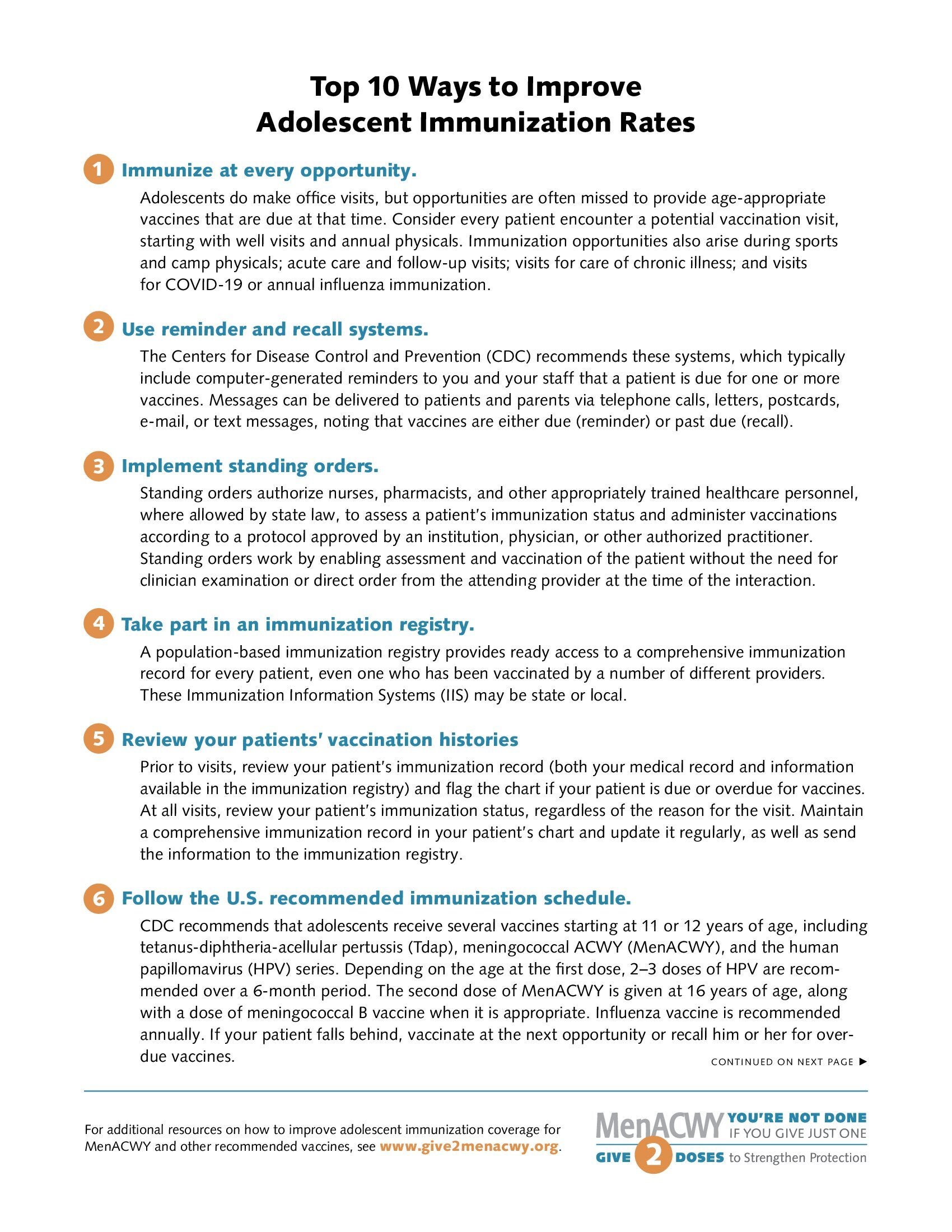 Top 10 Ways to Improve Adolescent Immunization Rates