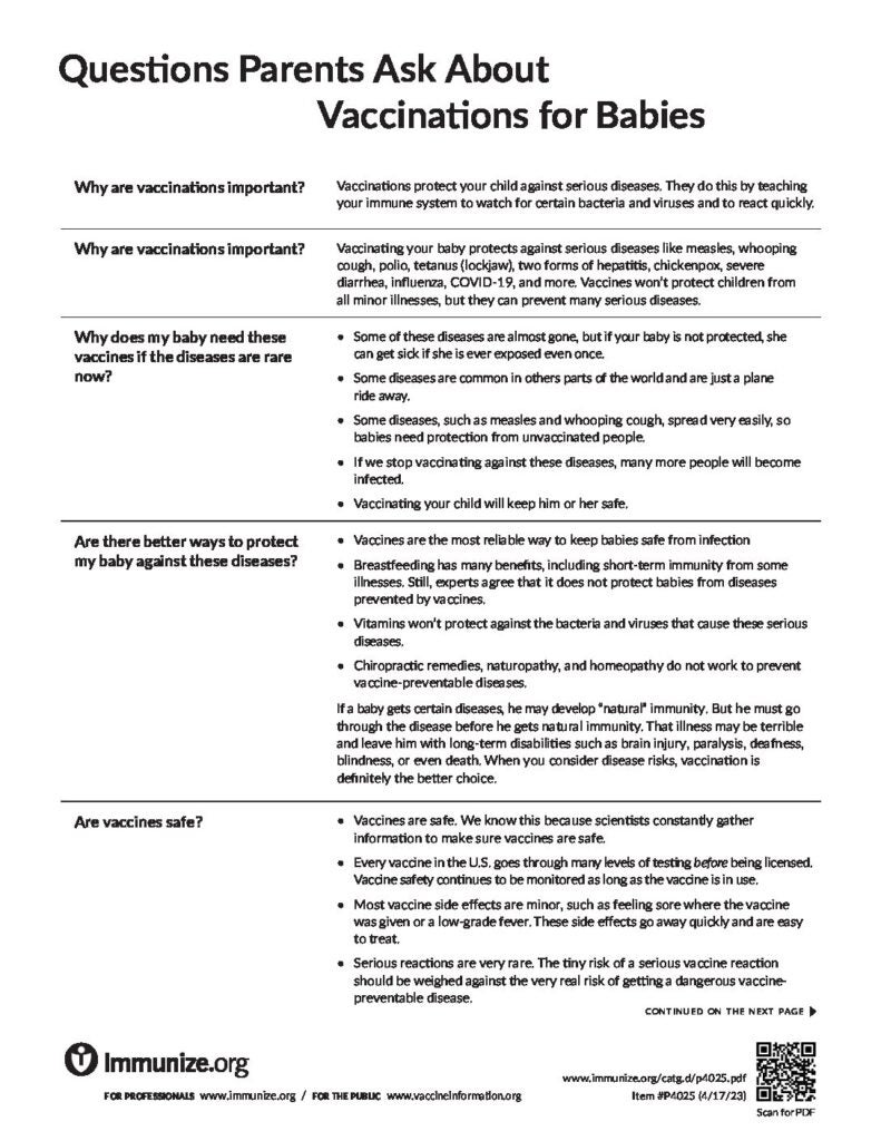 Written by Dr. Ari Brown, clear answers to parents’ questions about vaccines.