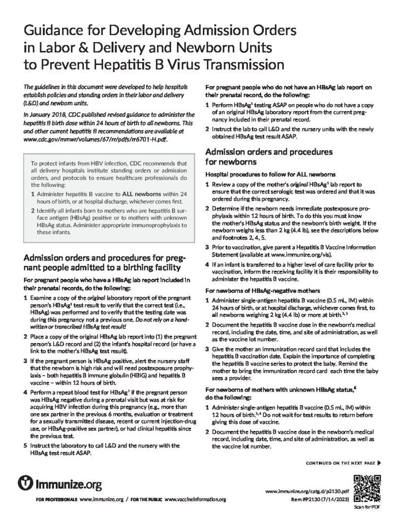 For HBsAg screening in labor and delivery units and hepatitis B immunization in newborn nurseries