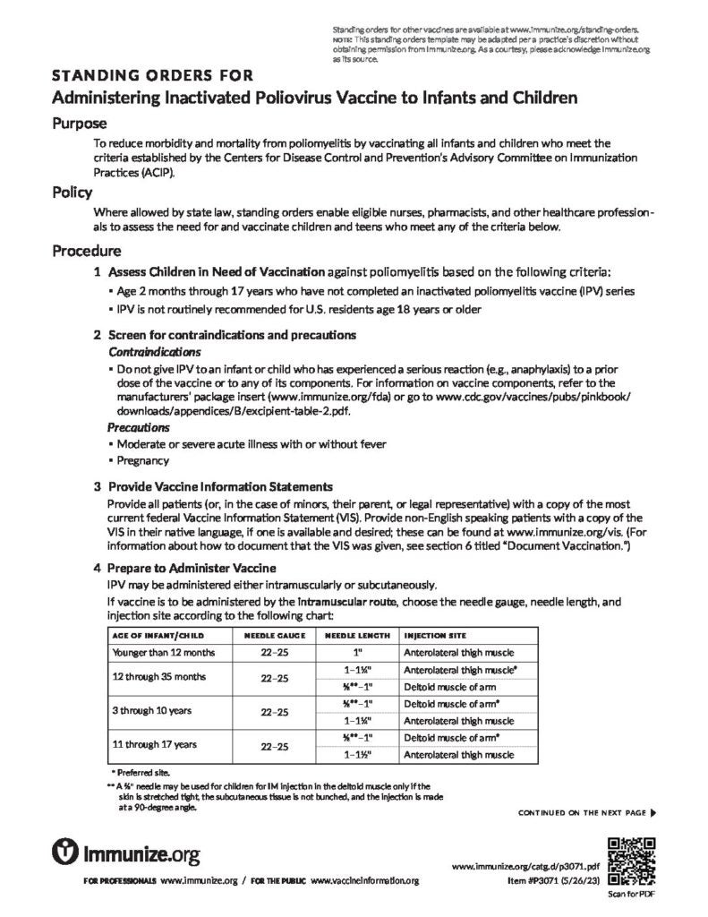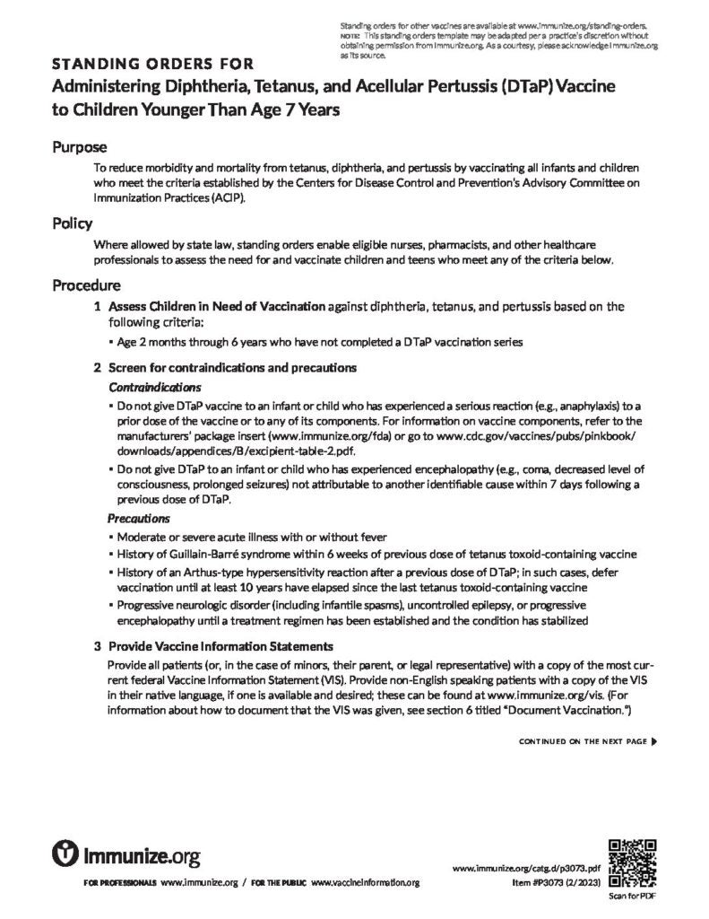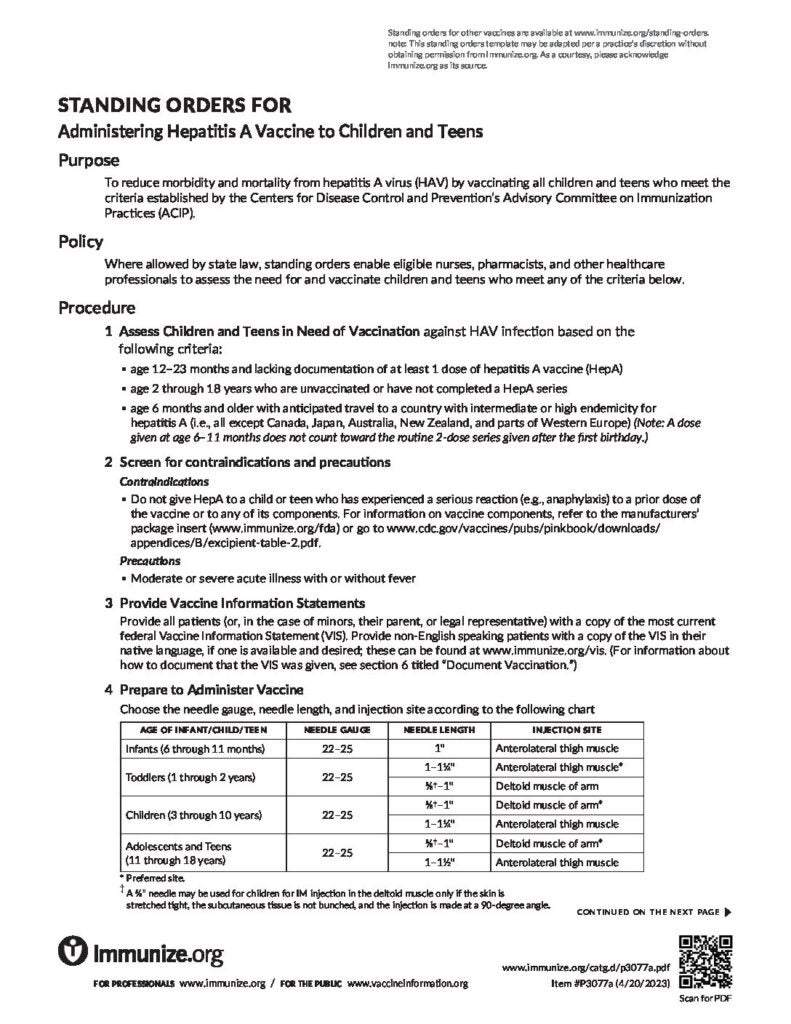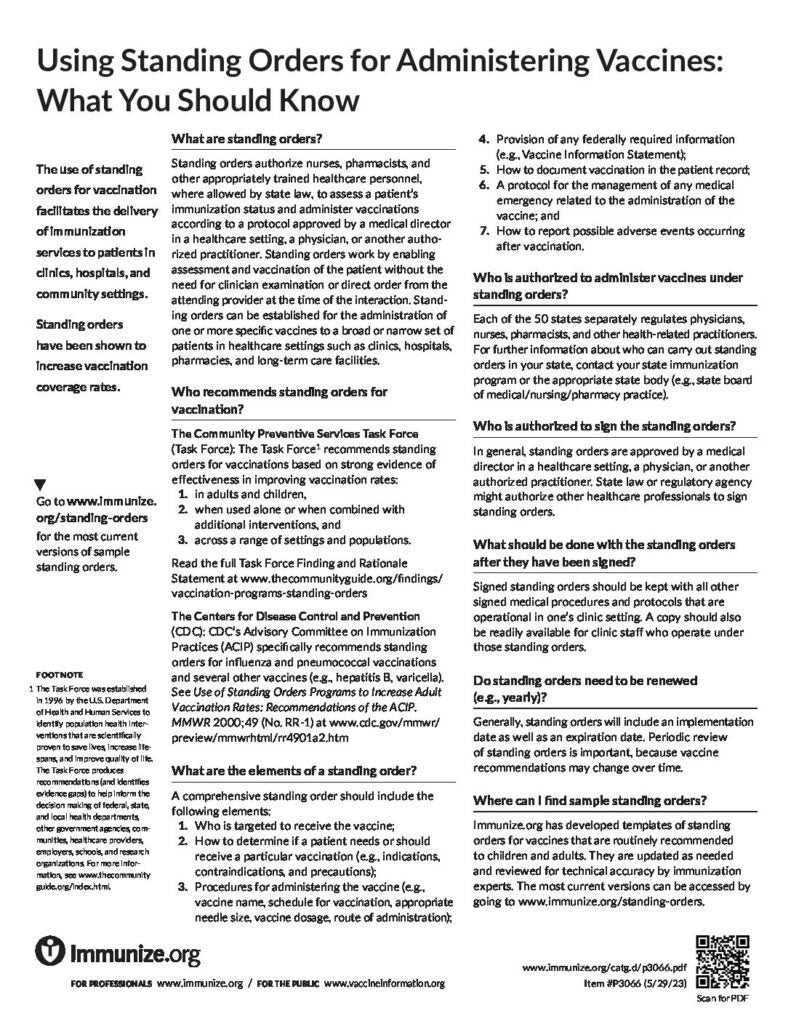 Access sample standing orders protocols for Japanese encephalitis, rabies, typhoid, yellow fever, and other vaccines from the Military Health System.