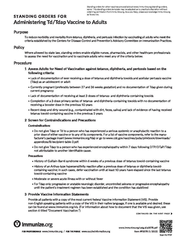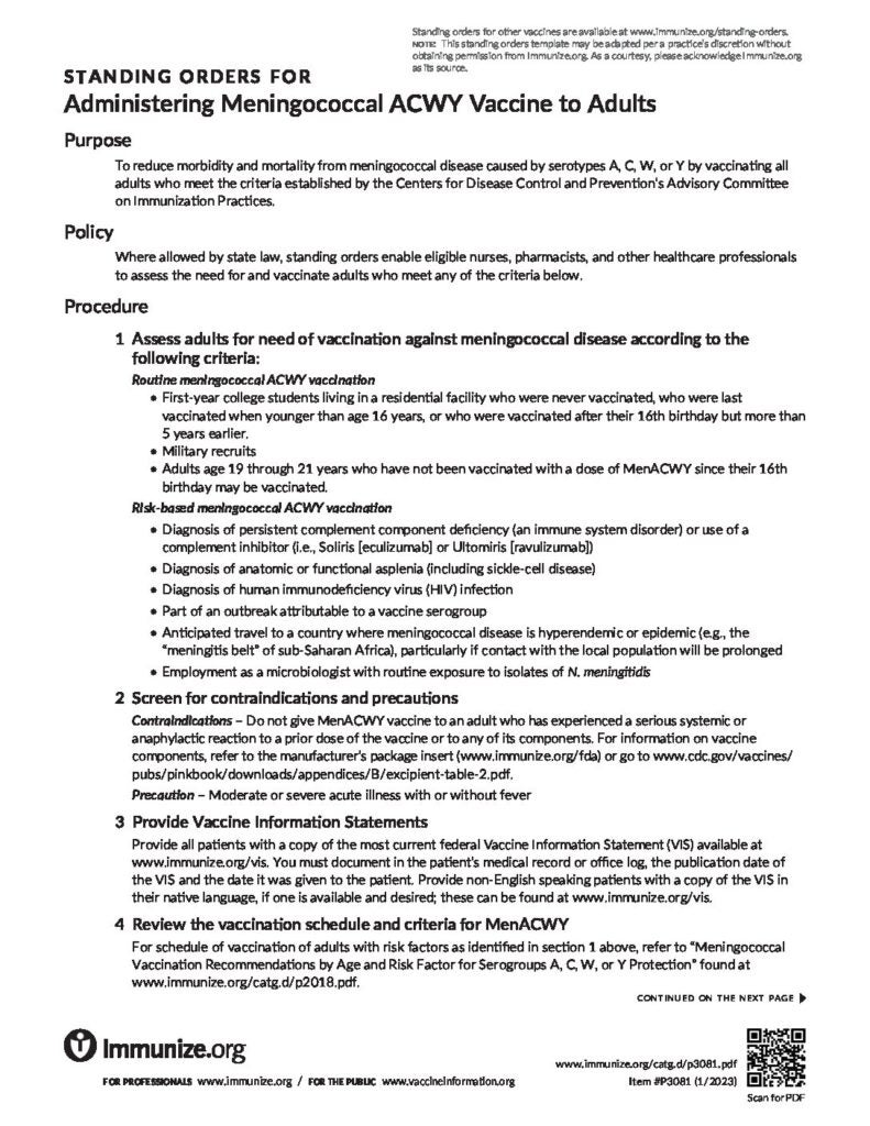 Eligible healthcare professionals may vaccinate adolescents and adults who meet any of the criteria on this form