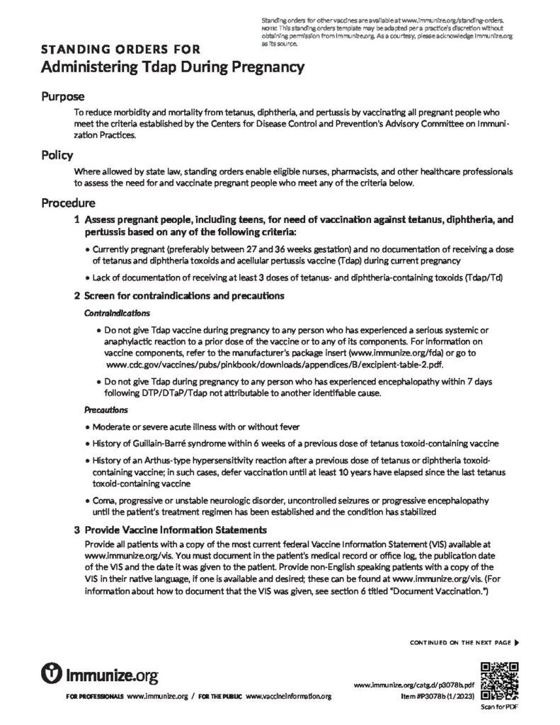 Eligible healthcare professionals may vaccinate pregnant persons who meet any of the criteria on this form