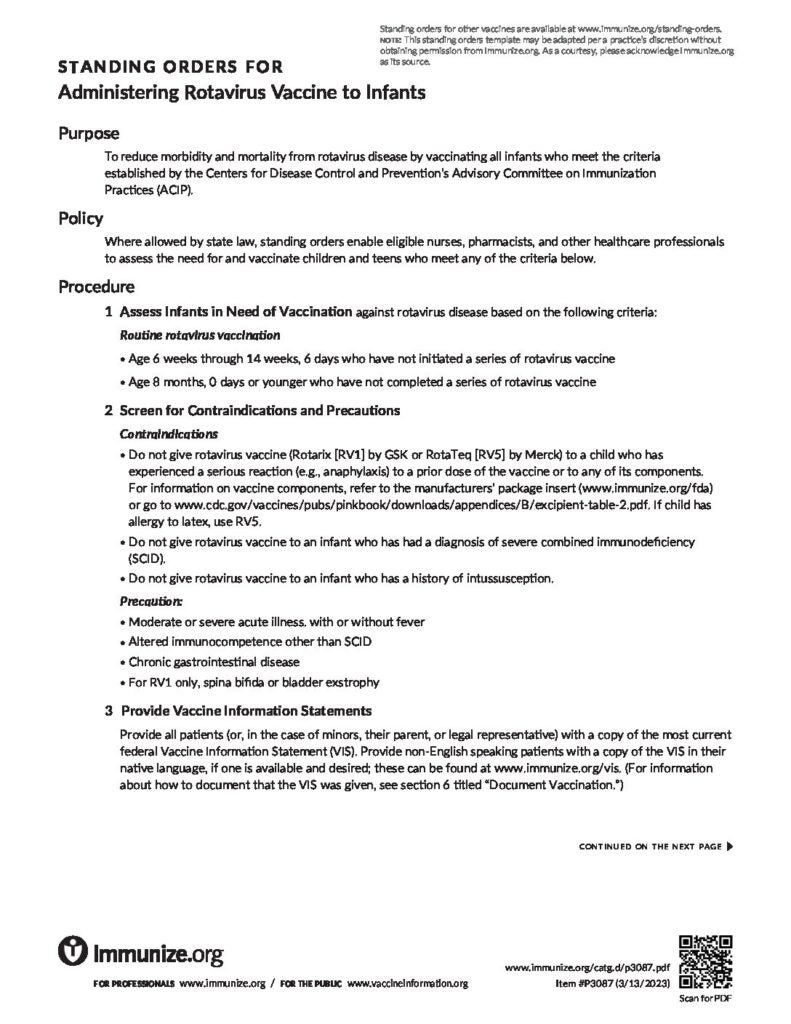 Eligible healthcare professionals may vaccinate infants who meet any of the criteria on this form
